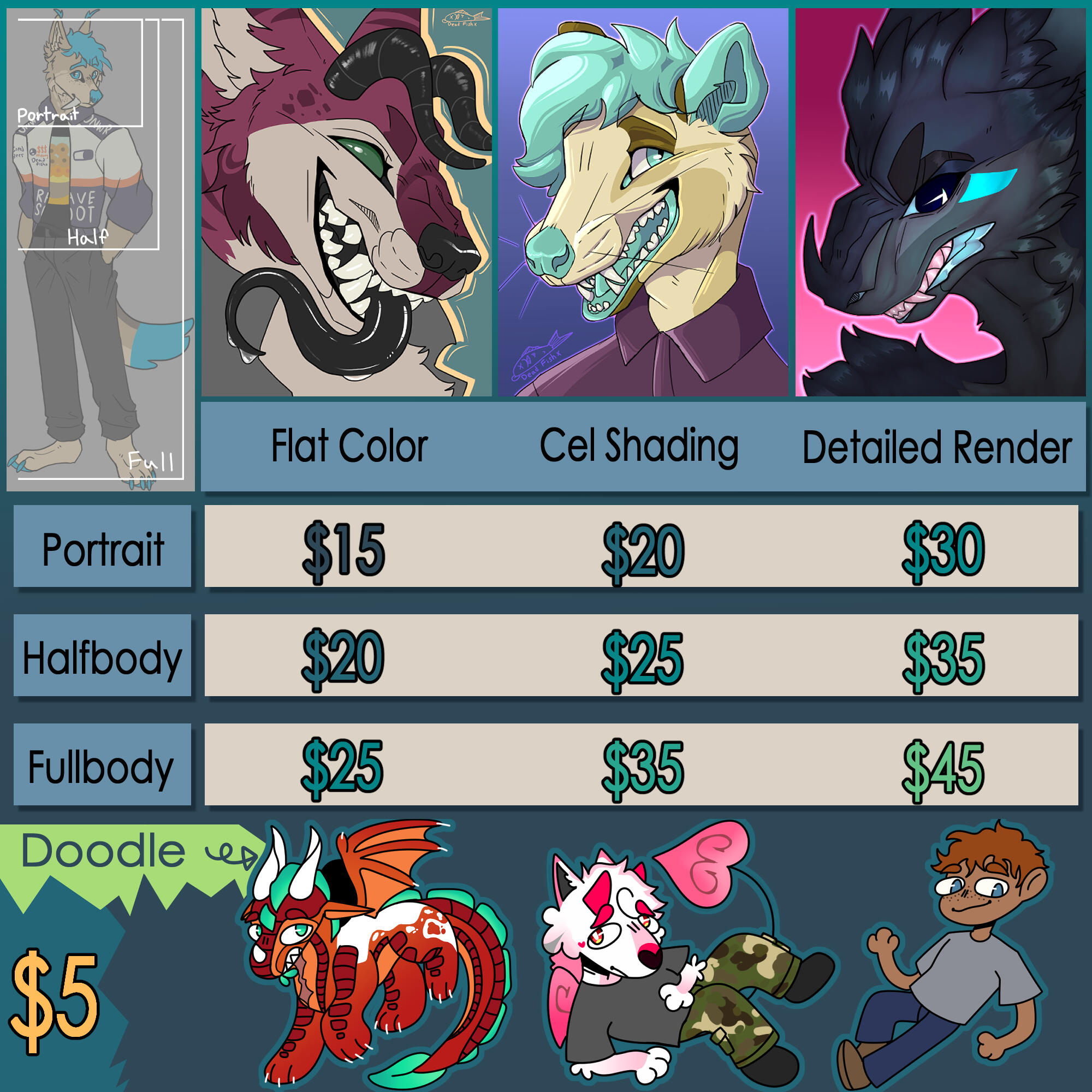 If you are interested in commissioning me, you may fill out my commissions form, or shoot me an email at [email protected] with the following information:- Commission size (full bod, half bod, portrait, doodle)